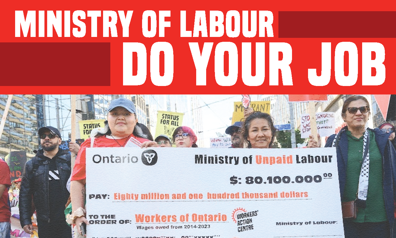 Over 60% of workers face wage theft. Just in the last ten years, the Ministry of Labour assessed employers owed $200 million to workers. We know that this is just a small fraction of wages owed as many don’t know how to file a complaint or just have to try to get another job so bills can get paid.